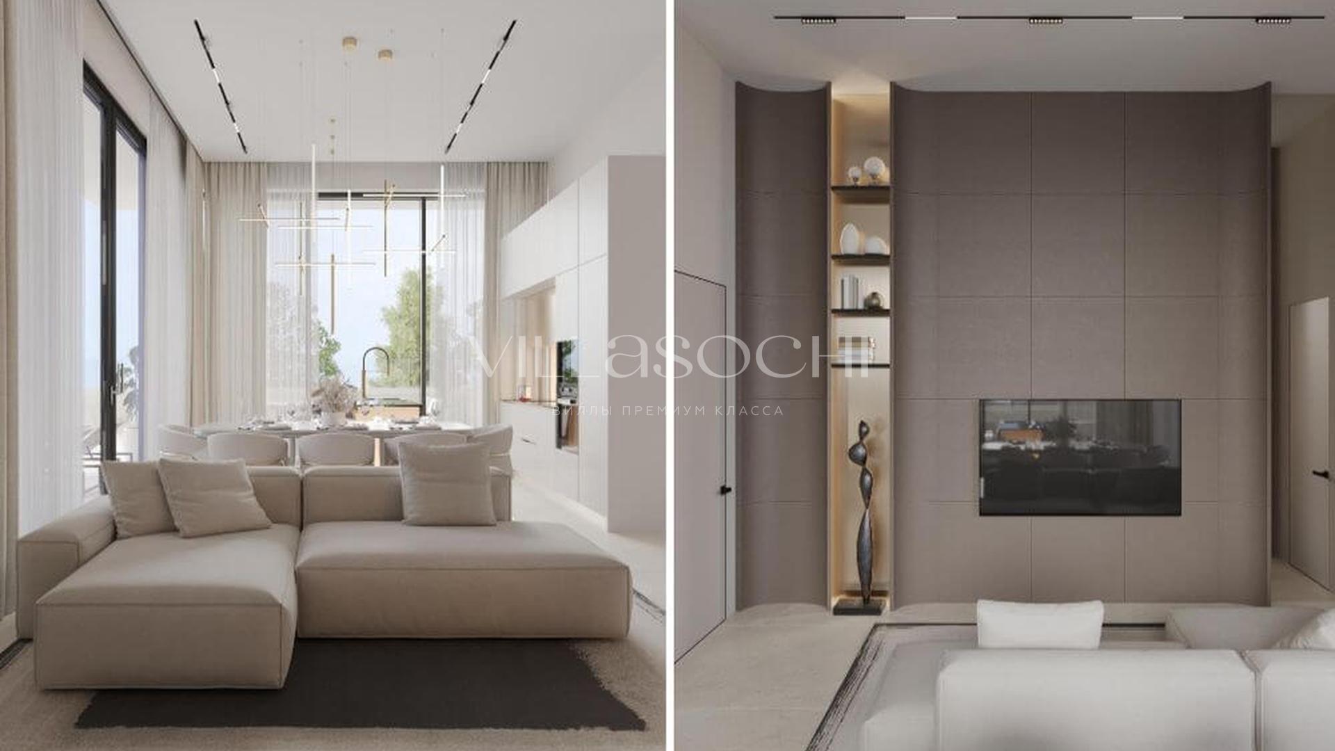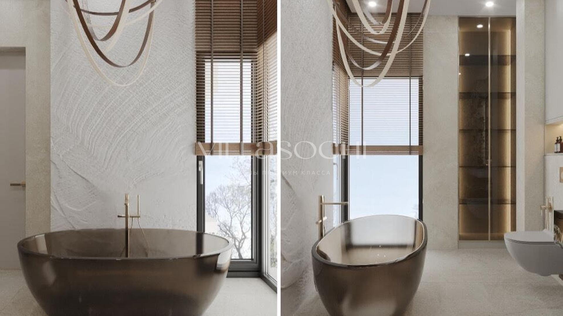 Дом в закрытом кп Brazilia. 245м2. Архитектура v6 gr.up. Потолки 4 м. Окна schuco. Фасад laminam (Италия). Бассейн. Гараж. До моря пешком 6 - 9 минут. Сети центральные. В данный момент в доме ведется ремонт. Готовность до нового года.