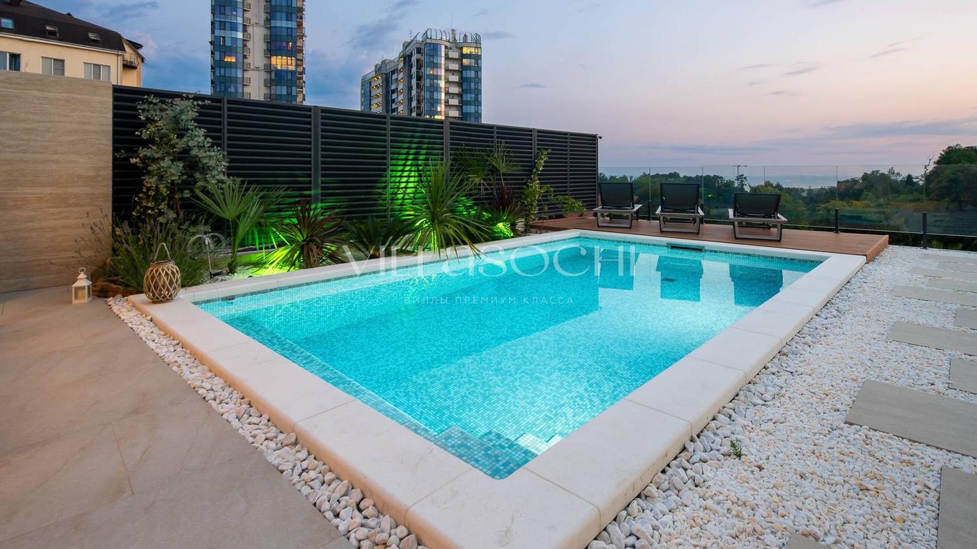 Территория благоустроена, имеется бассейн и летняя зона барбекю.