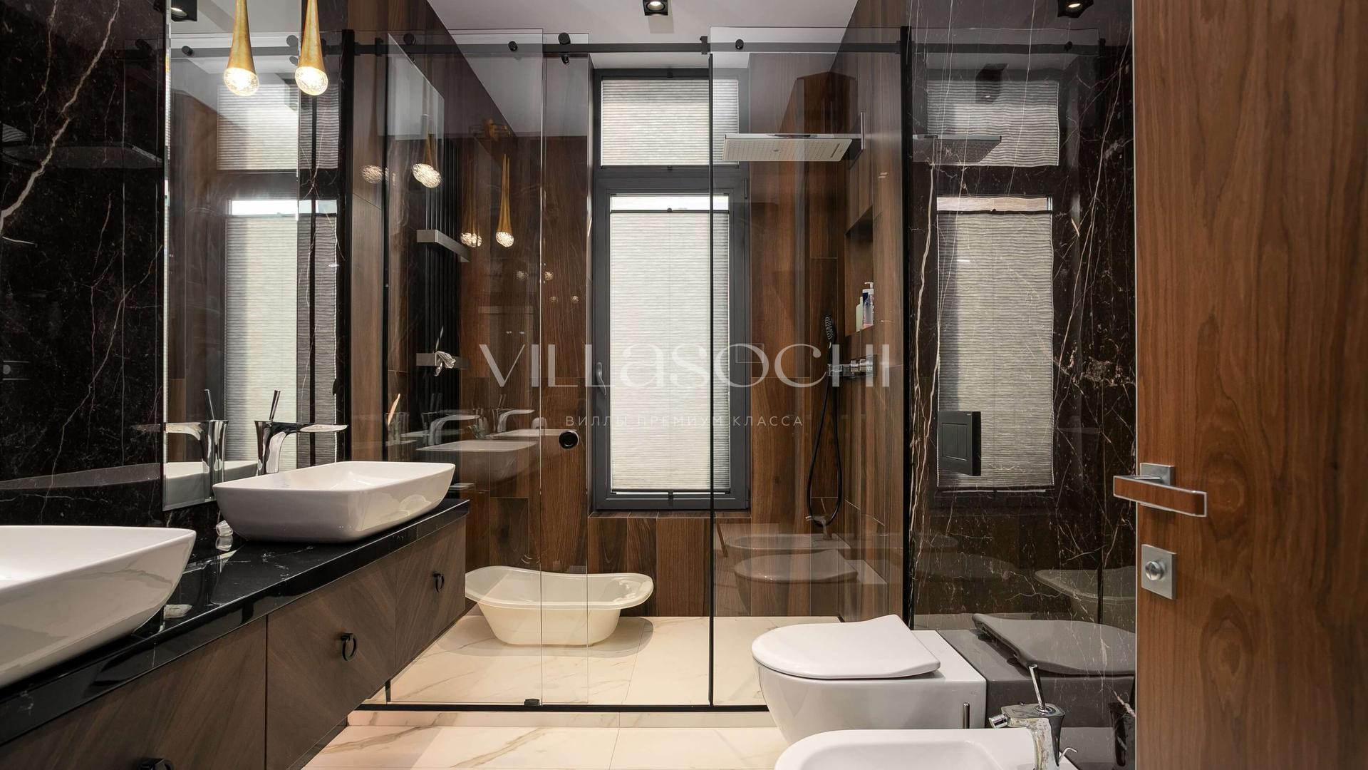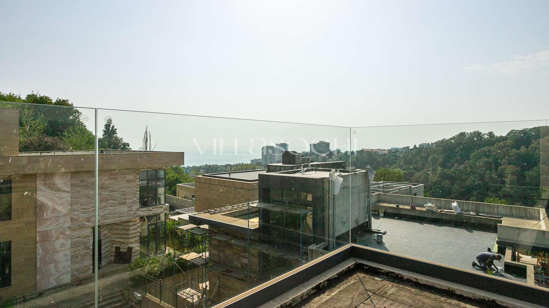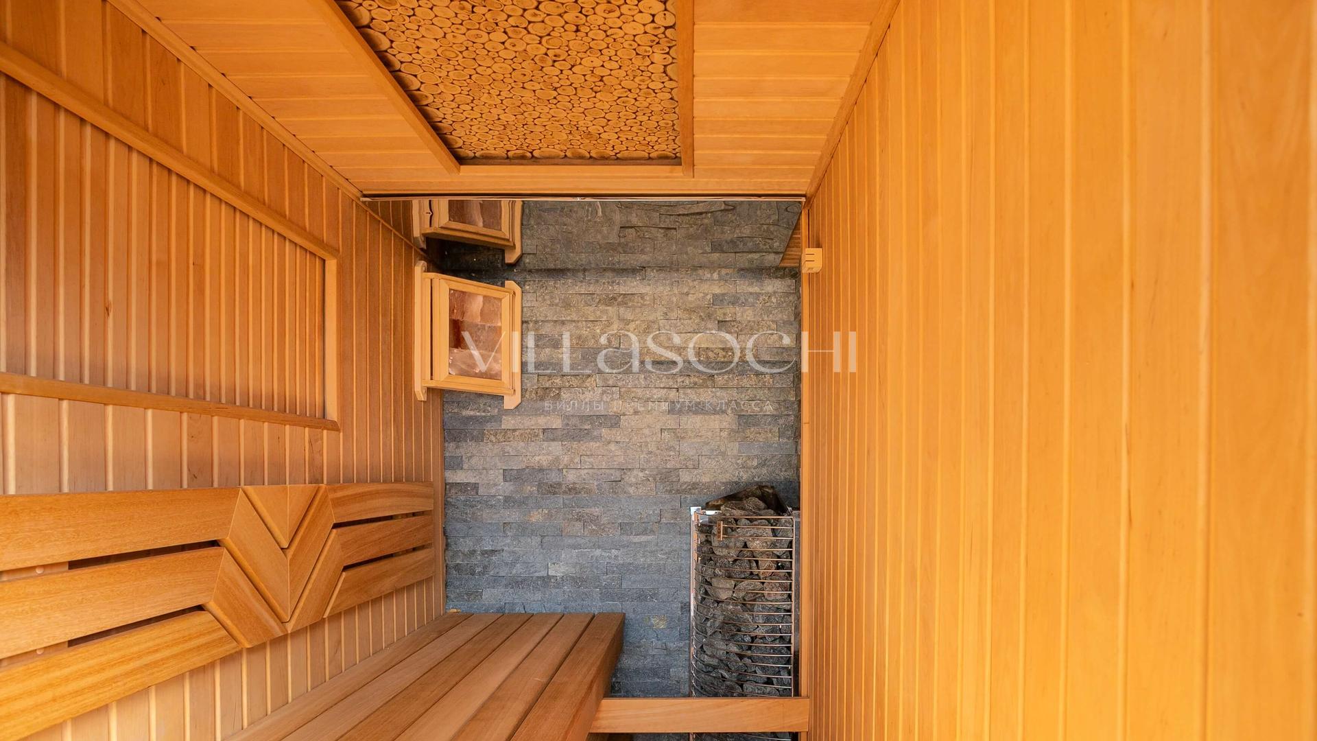 На территории *подогреваемый бассейн, сауна, спортзал*, парковка с биоклиматической перголой на два автомобиля.