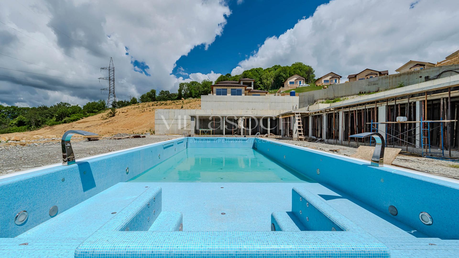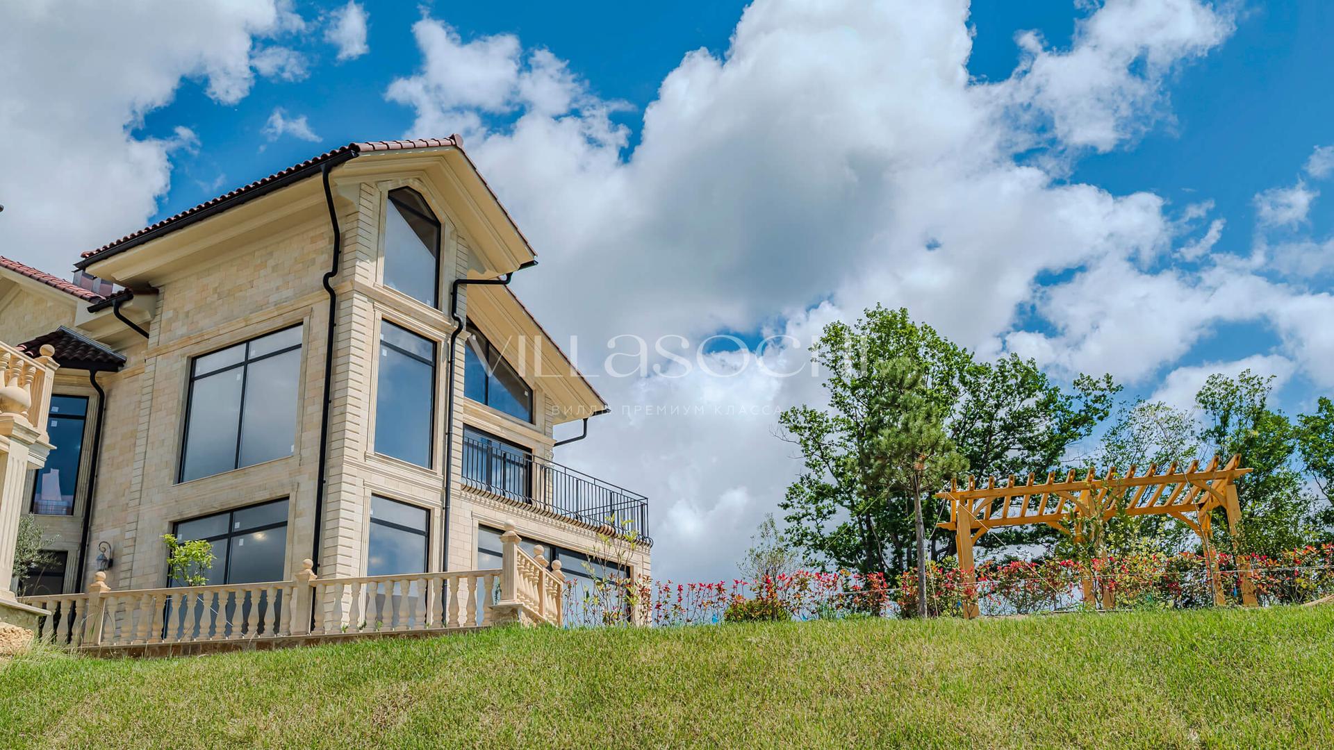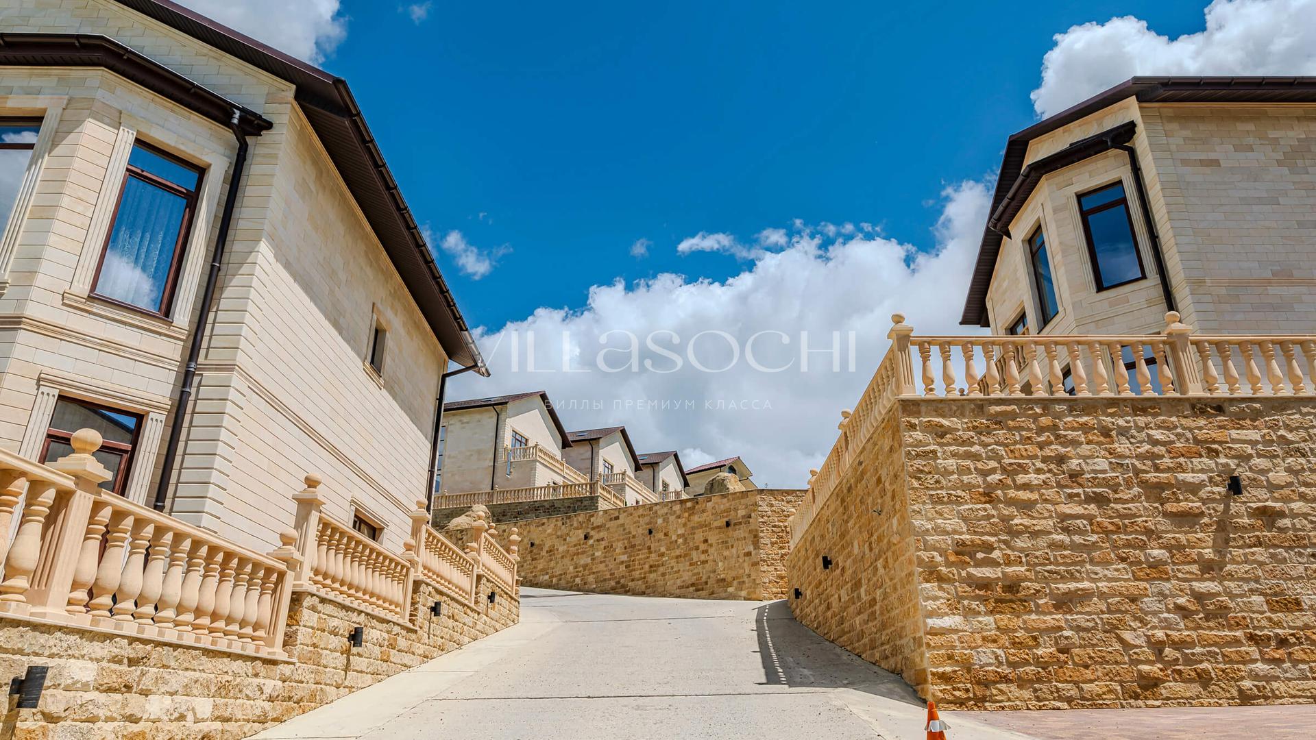 Закрытая, охраняемая территория 1 га, 13 домов, каждый с бассейном и видом на море и аэропорт.