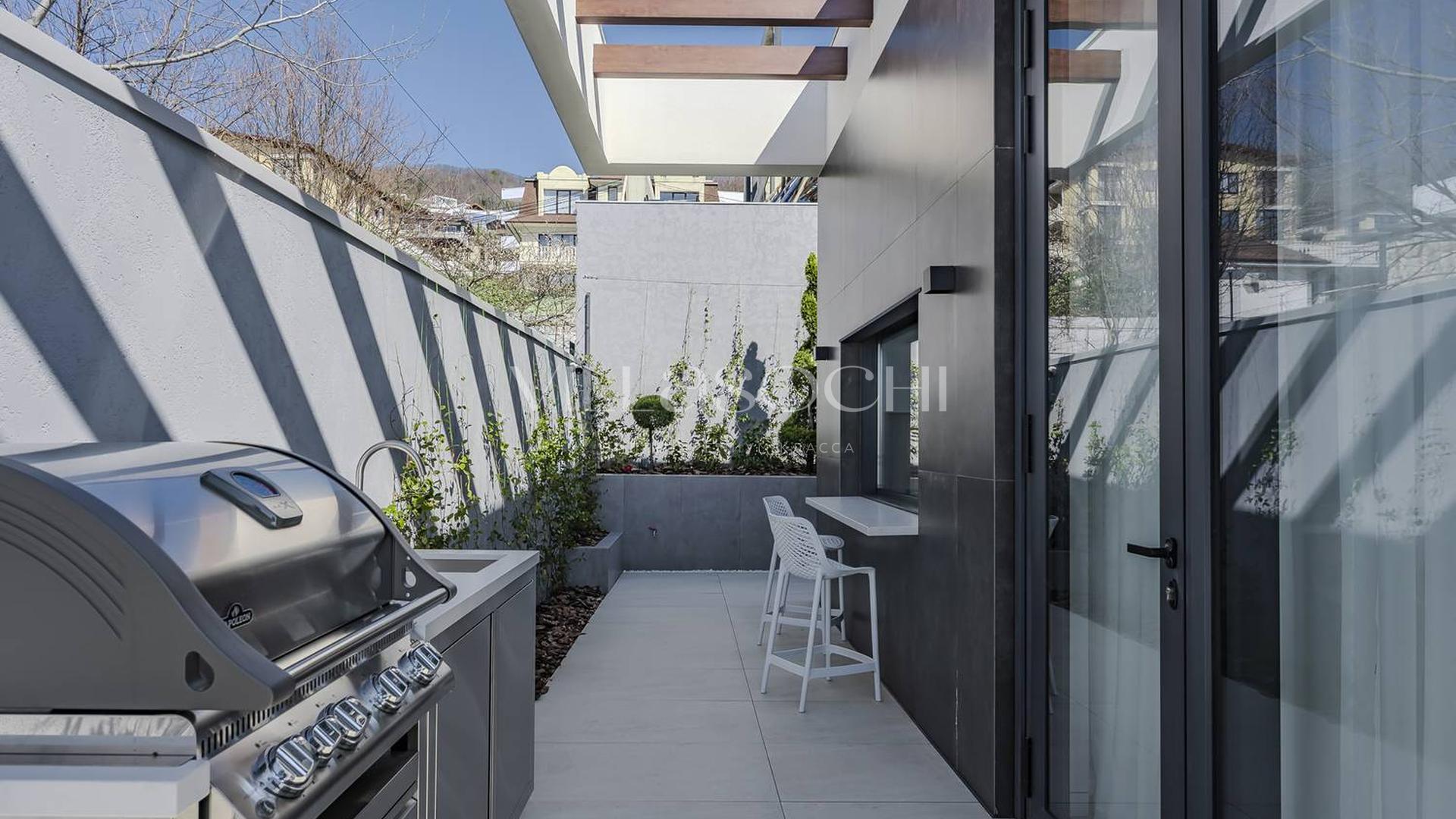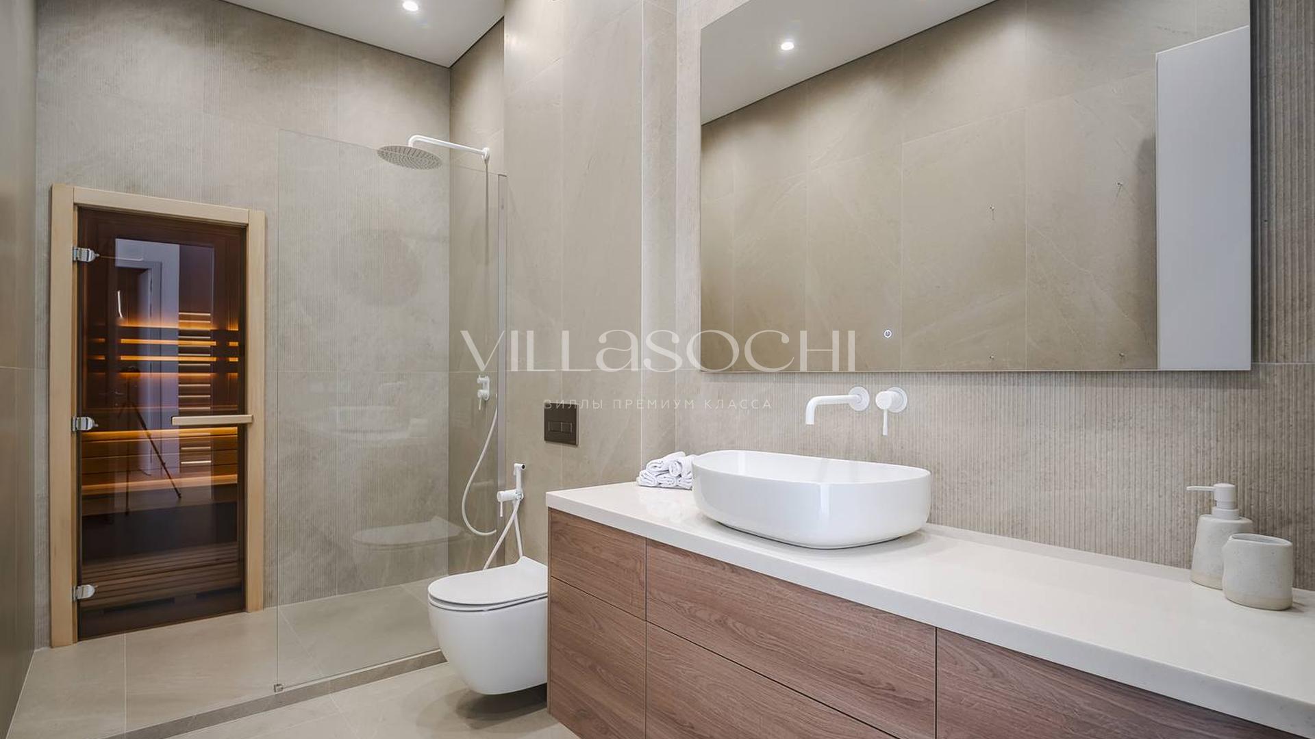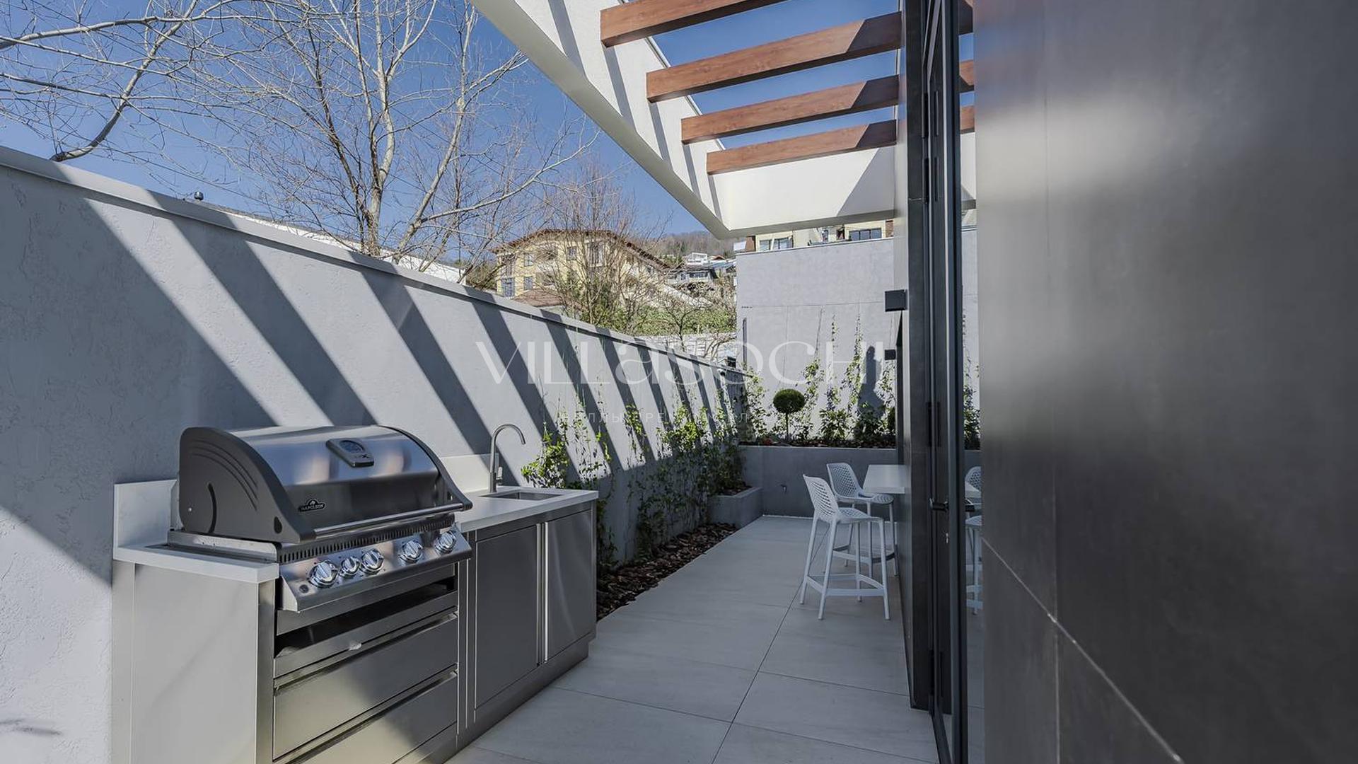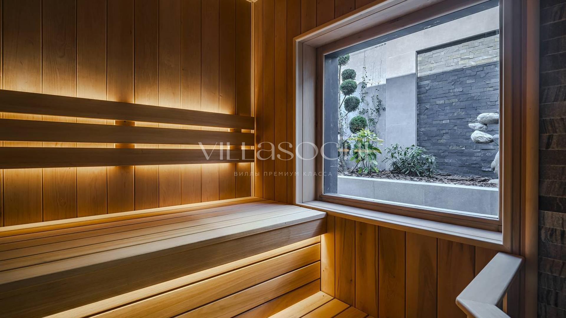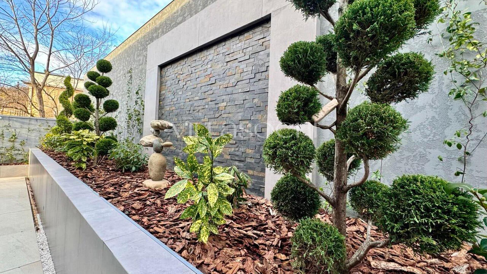Представлена к продаже новая вилла в Хосте. Архитектурный сложный фасад использует пространство территории максимально эффективно, ночная подсветка, ландшафтное озеленение, на эксплуатируемой кровле гаража совмещенного с котельной. Наличие сауны и бассейна 11 на 3,5 метра.