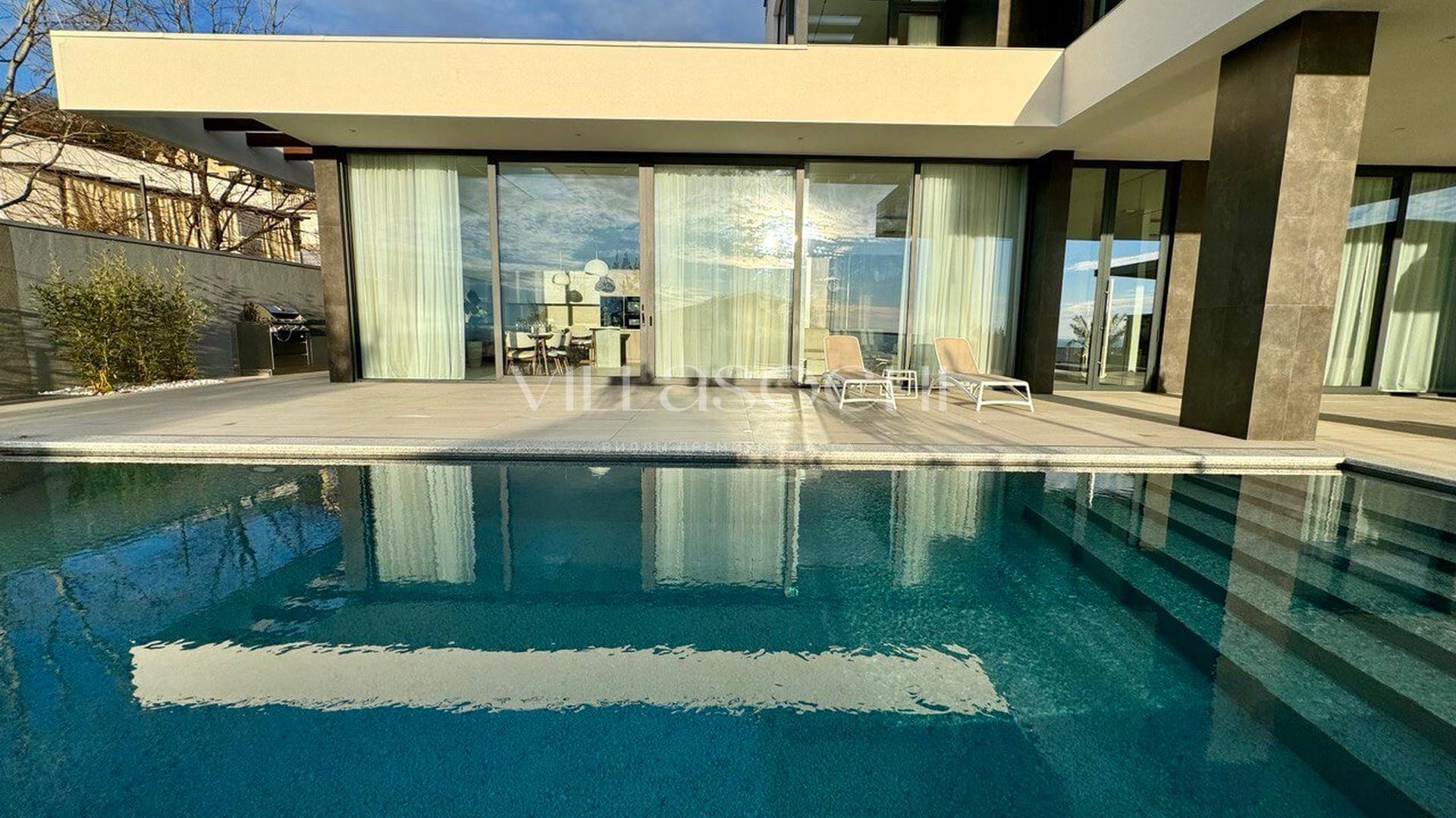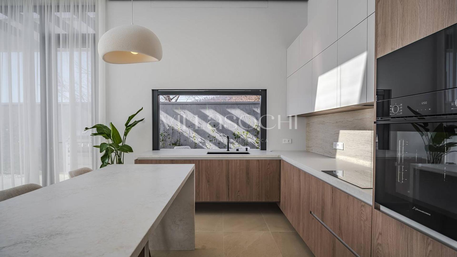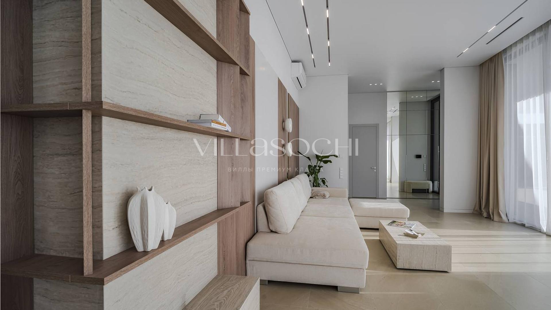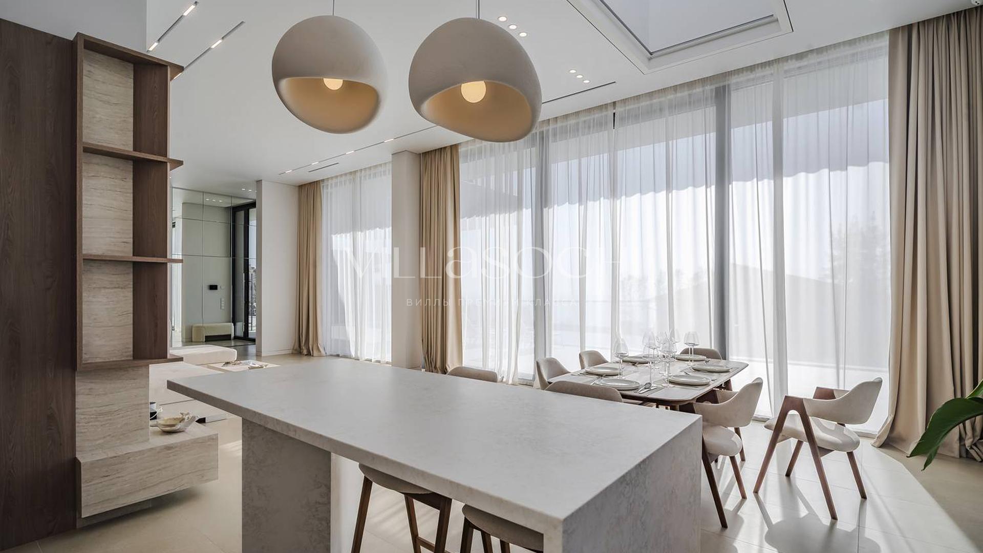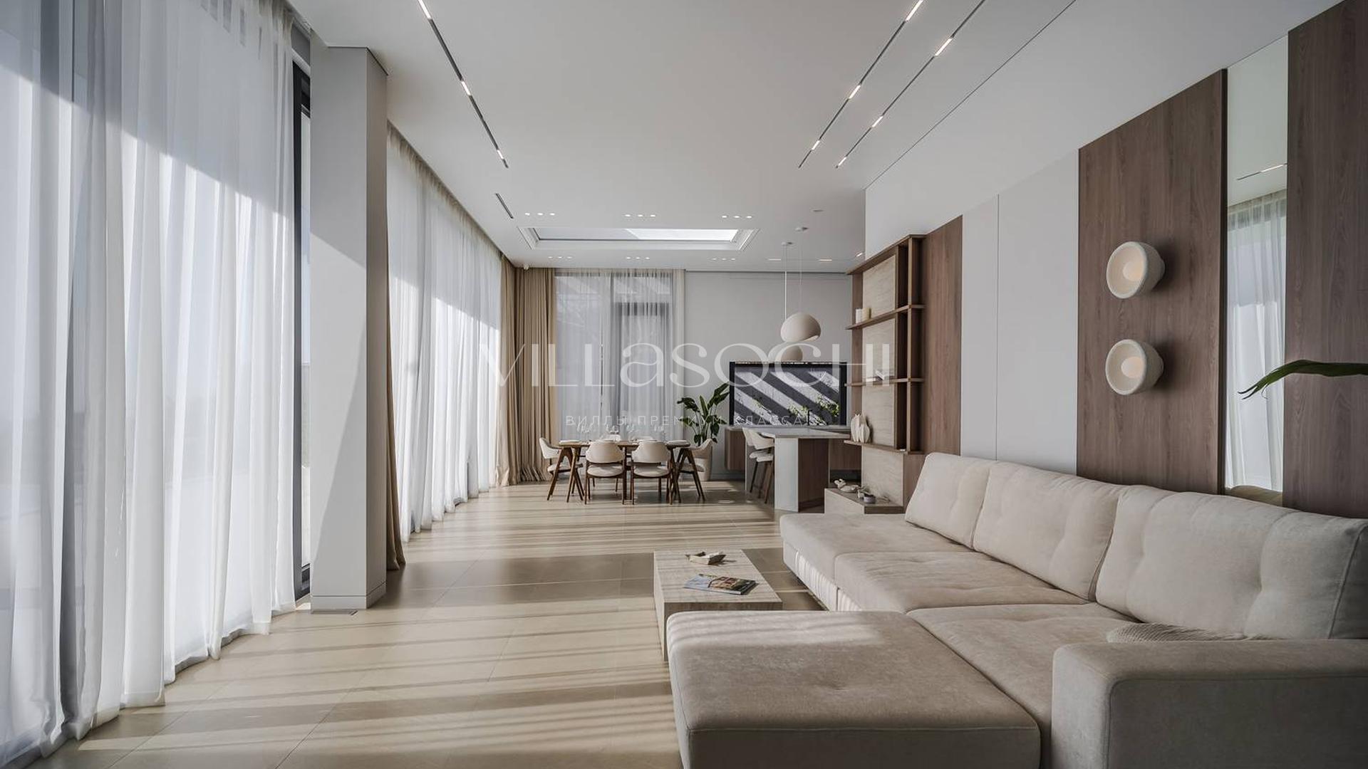 Представлена к продаже новая вилла в Хосте. Архитектурный сложный фасад использует пространство территории максимально эффективно, ночная подсветка, ландшафтное озеленение, на эксплуатируемой кровле гаража совмещенного с котельной. Наличие сауны и бассейна 11 на 3,5 метра.