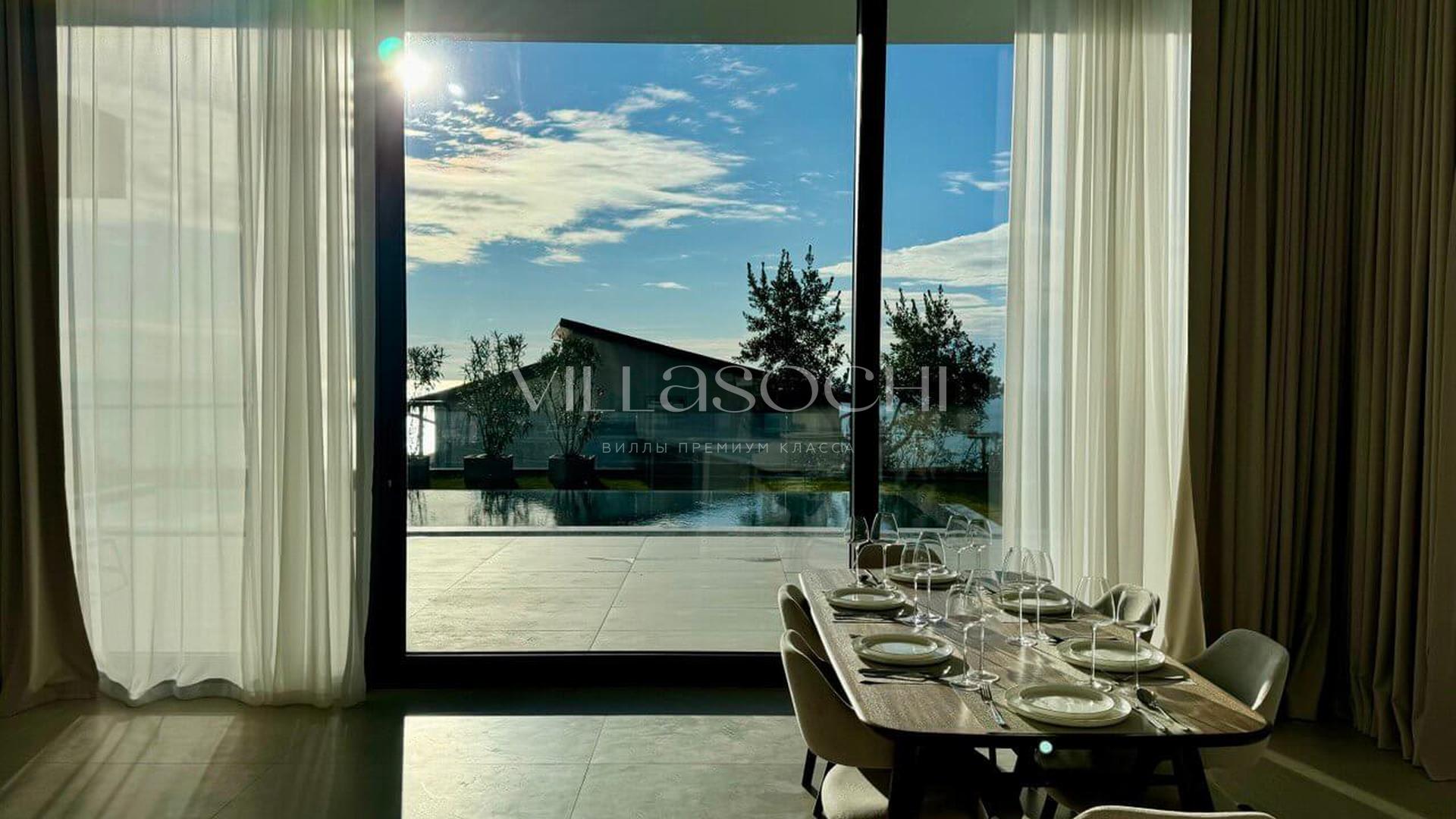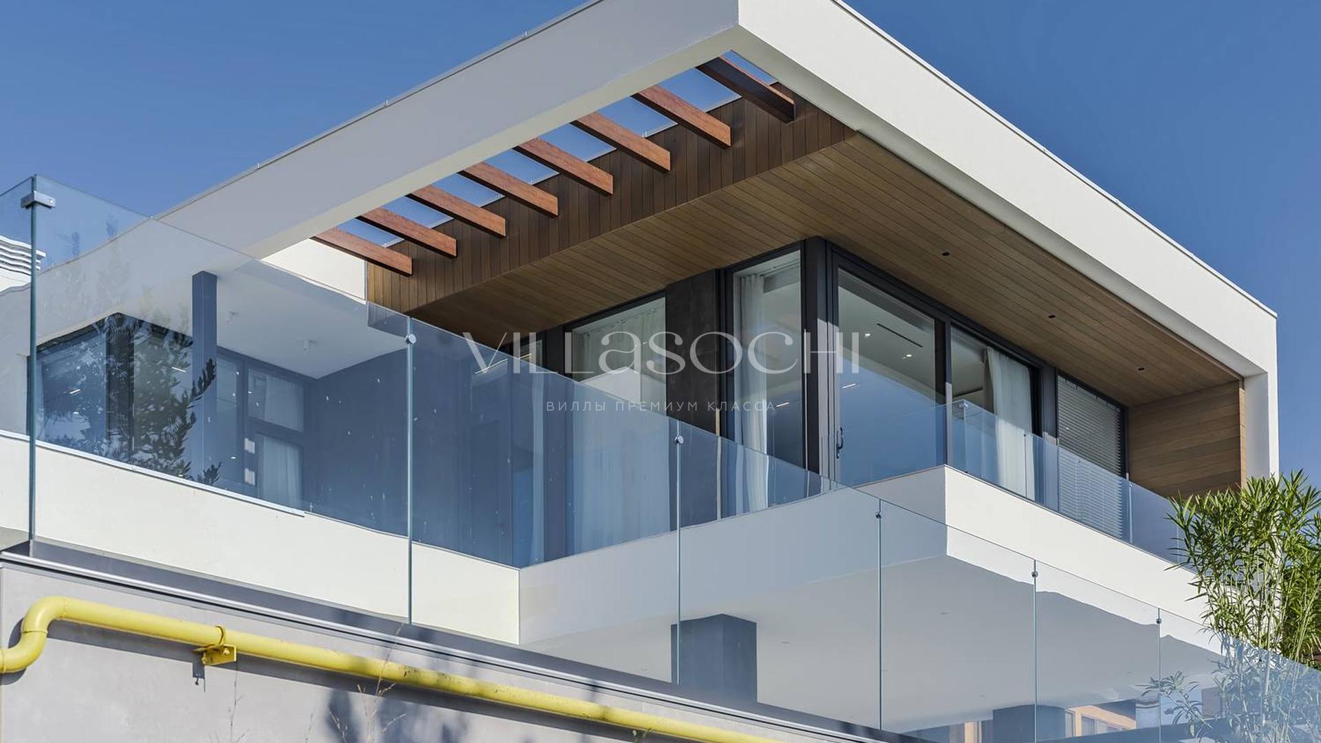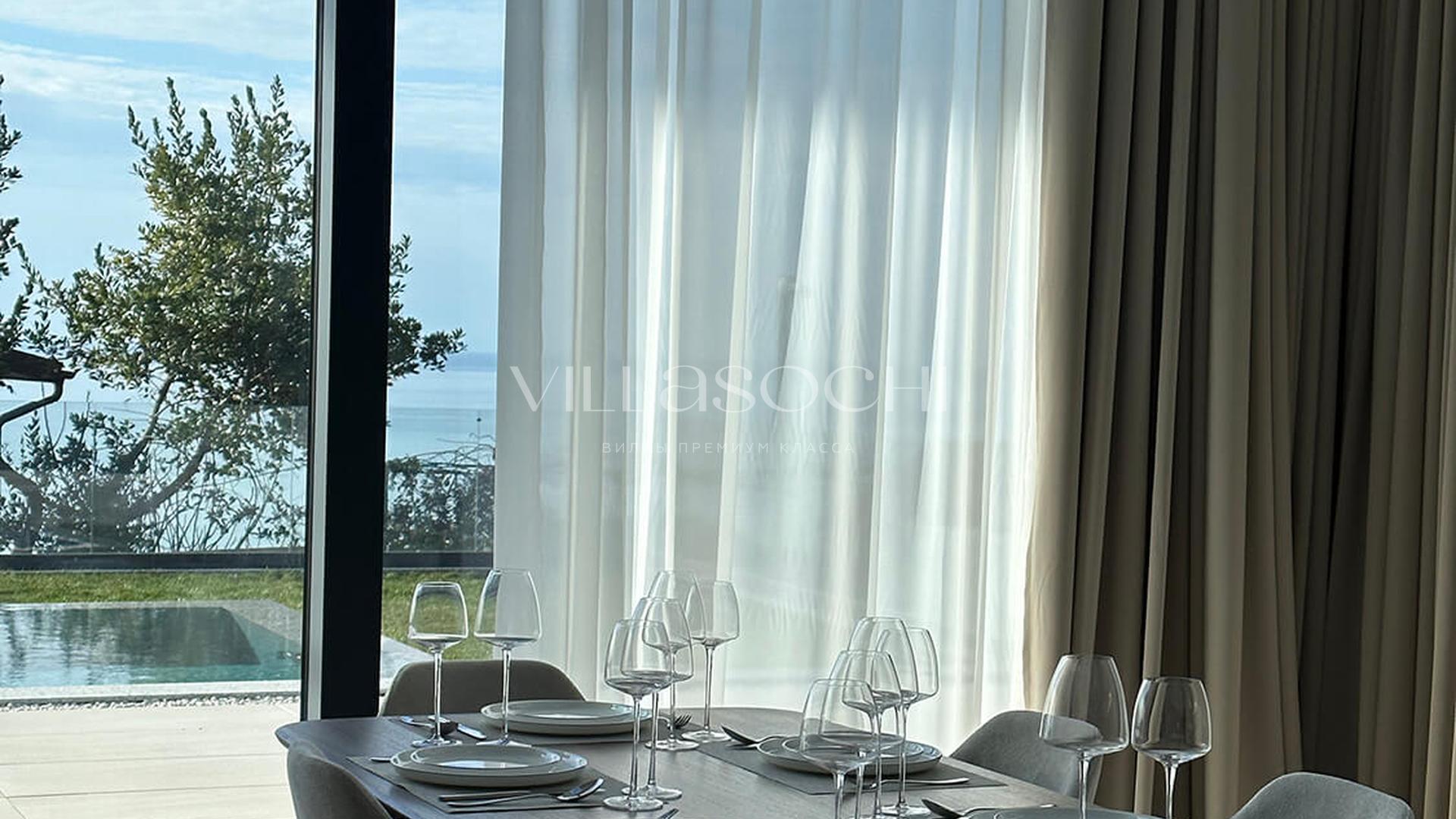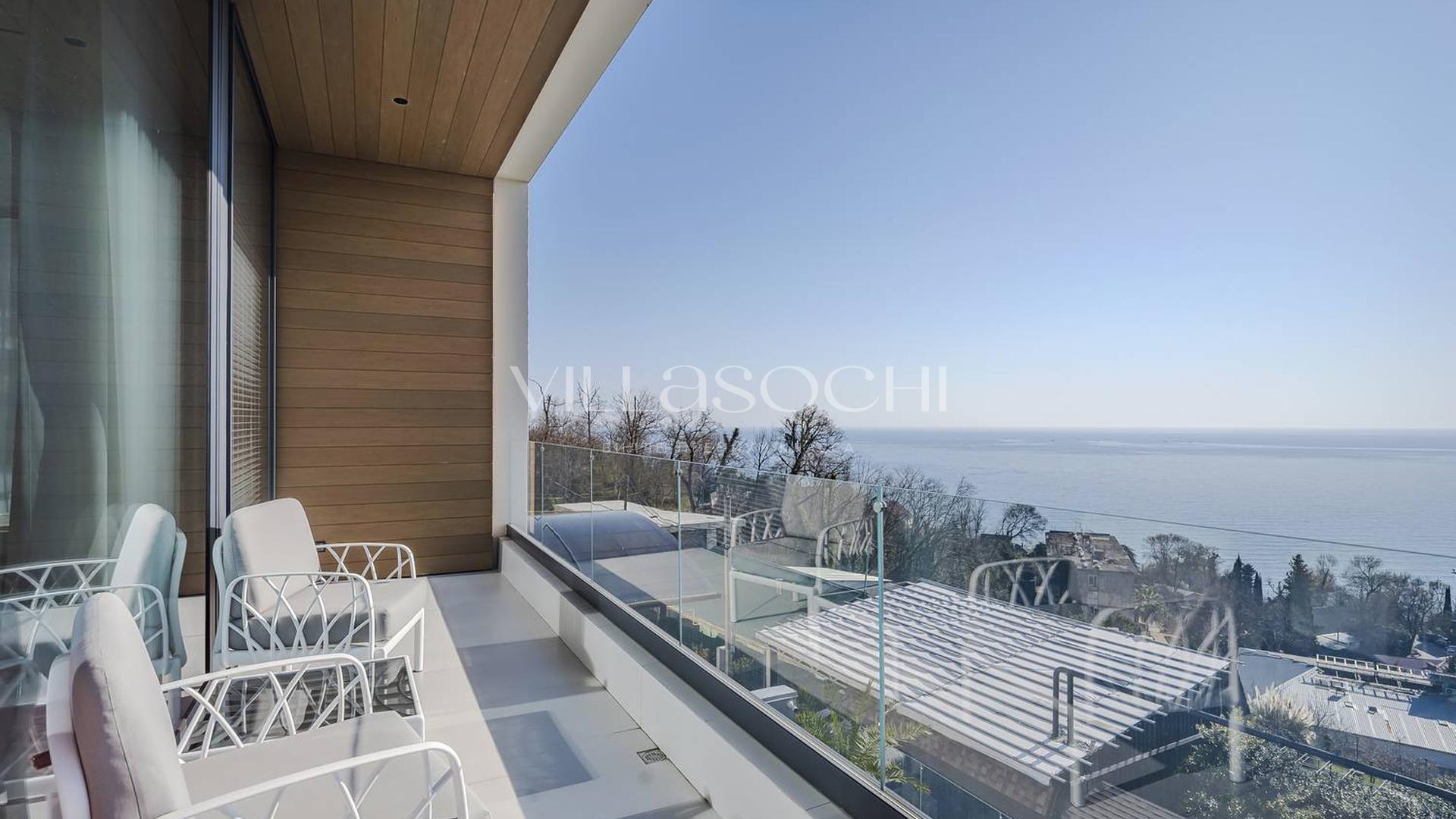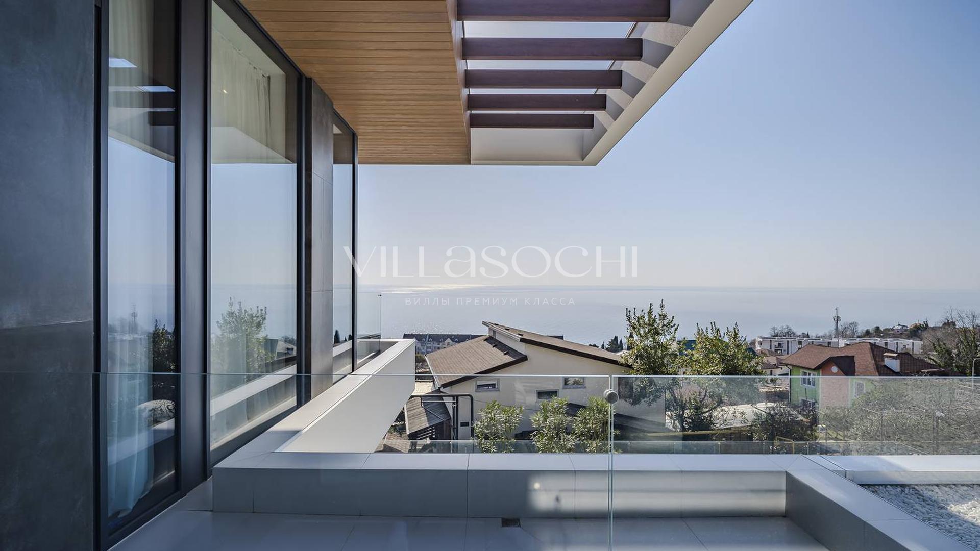 Дом максимально поднят над соседними коттеджами, что гарантирует панорамный вид на море и приватность.