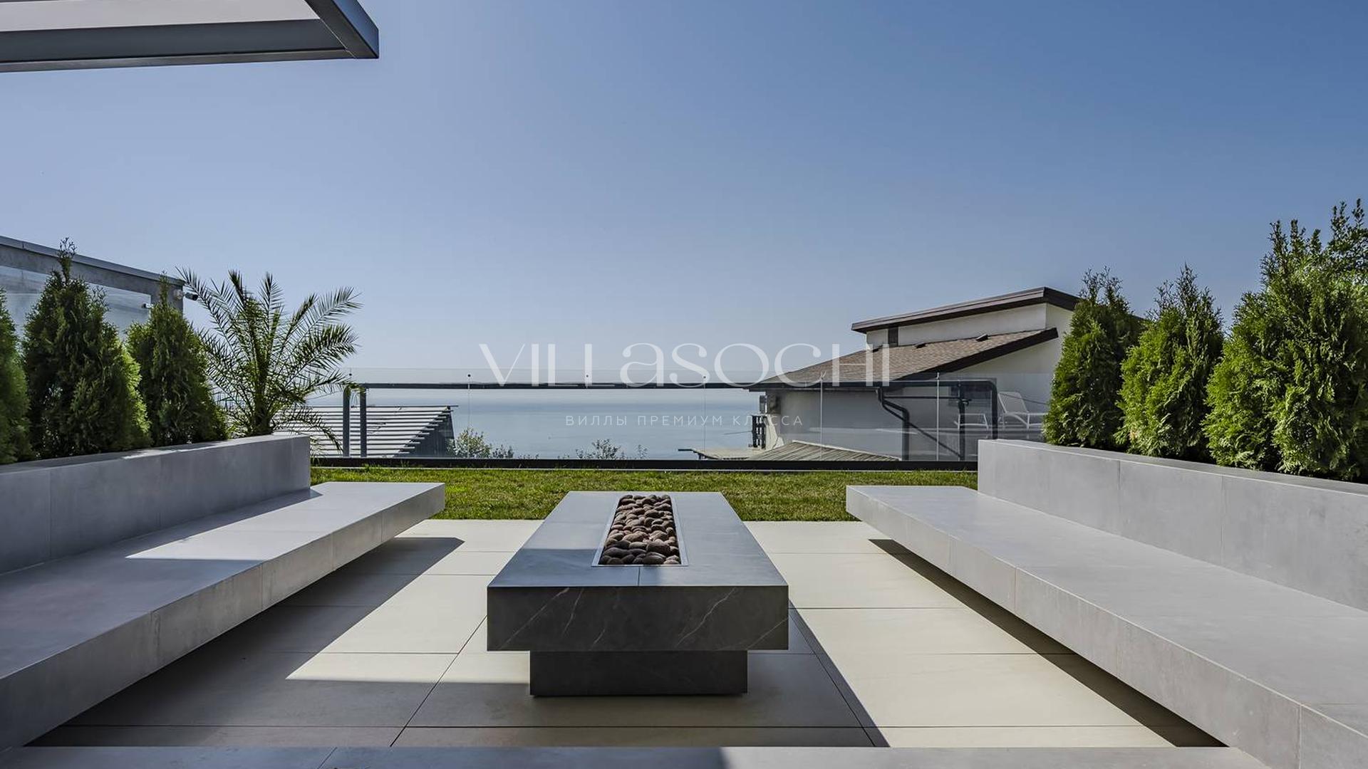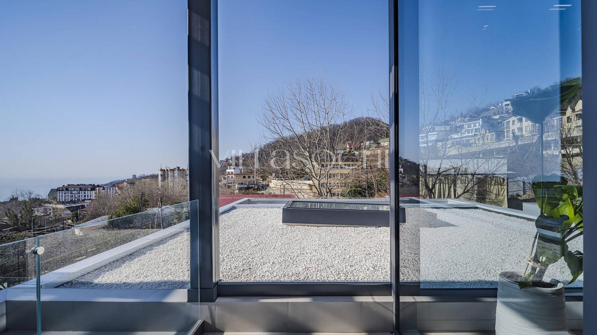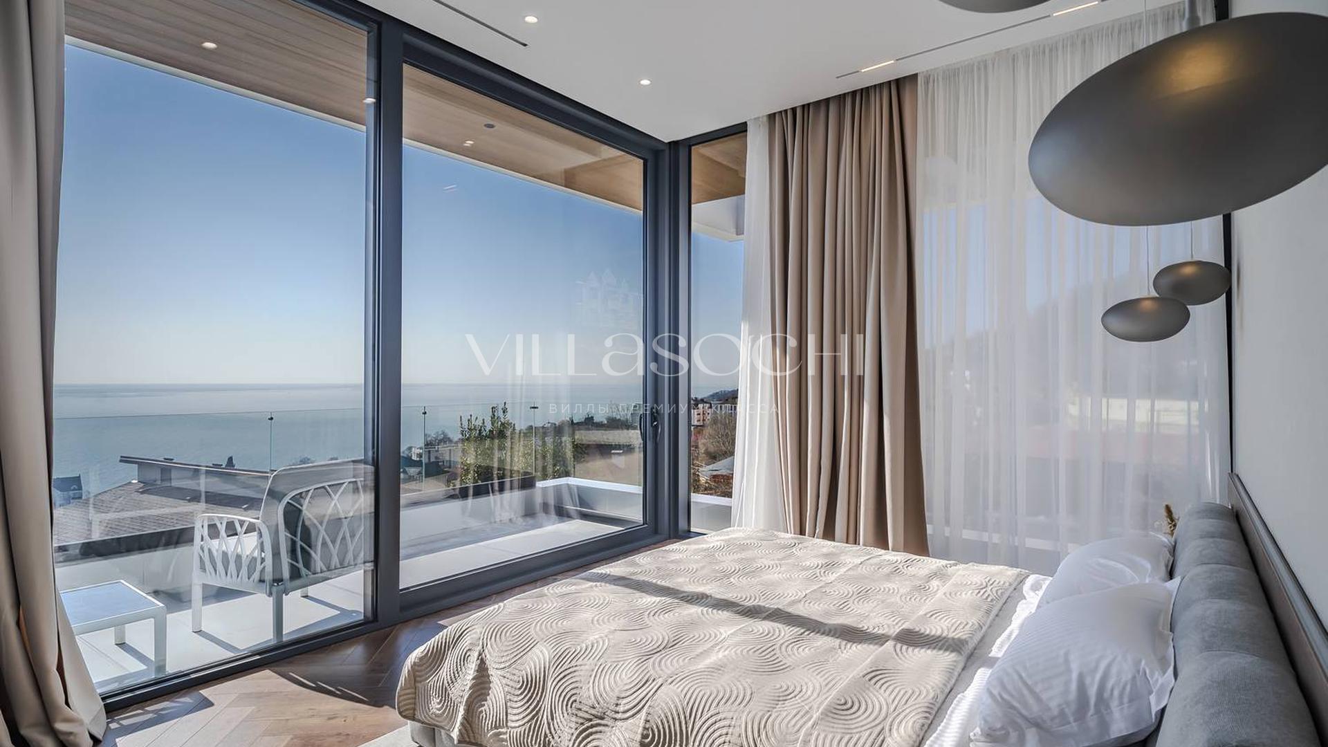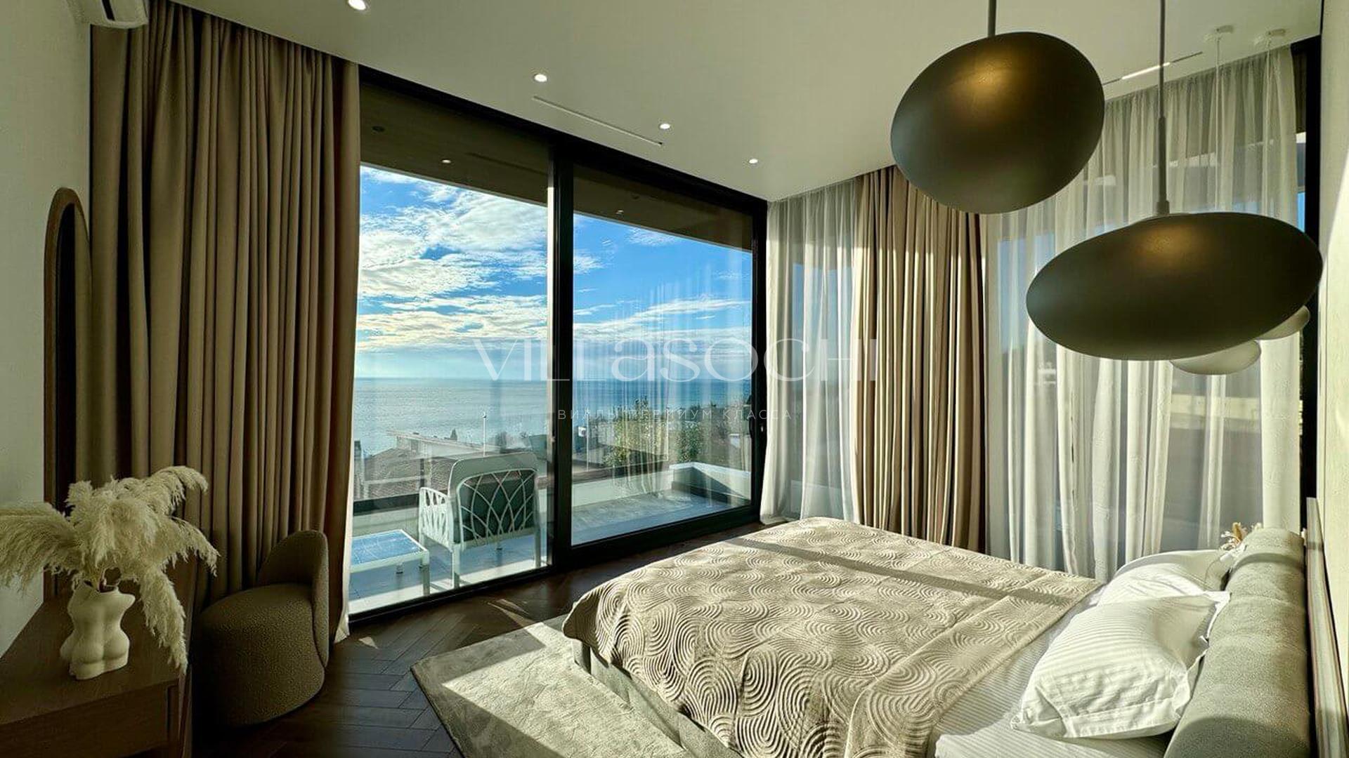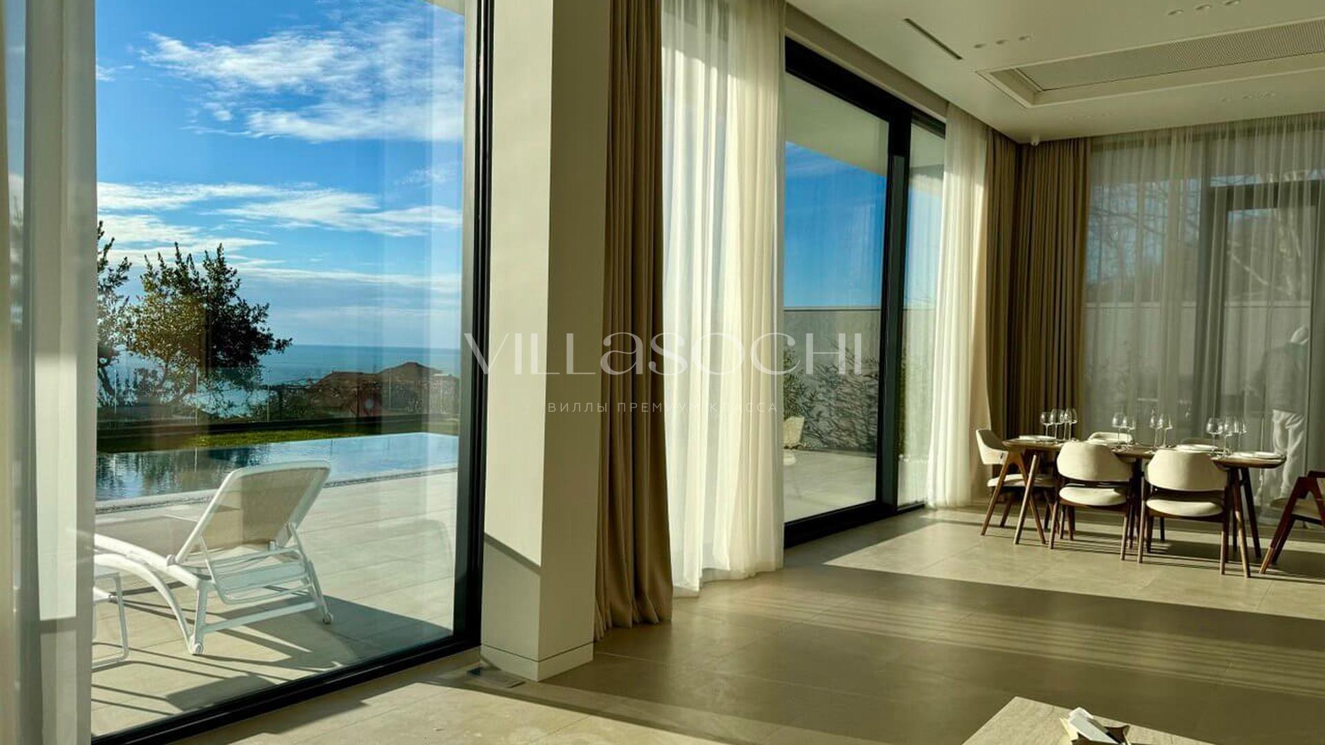 Дом максимально поднят над соседними коттеджами, что гарантирует панорамный вид на море и приватность.