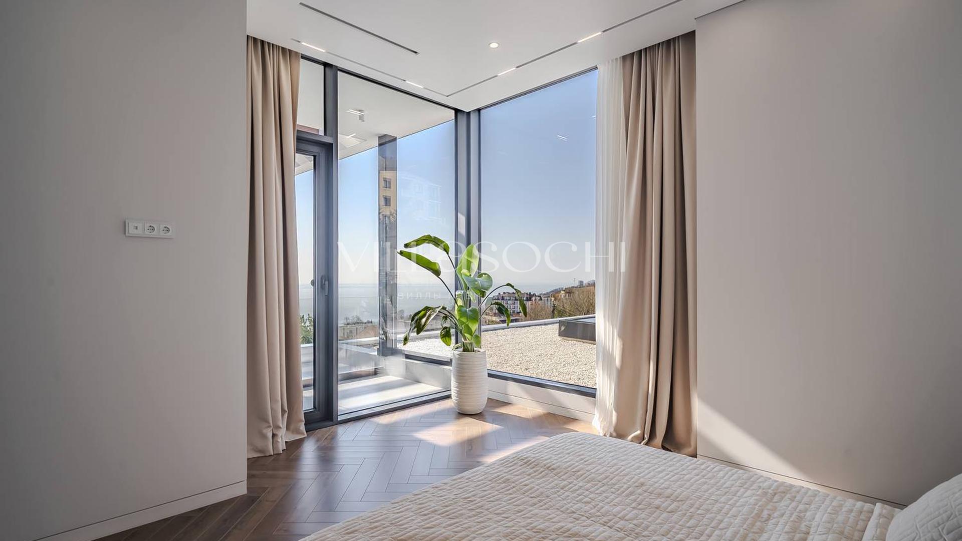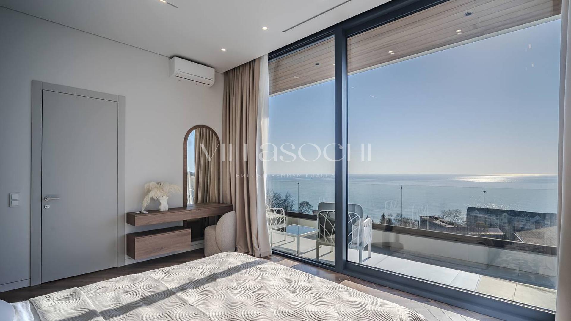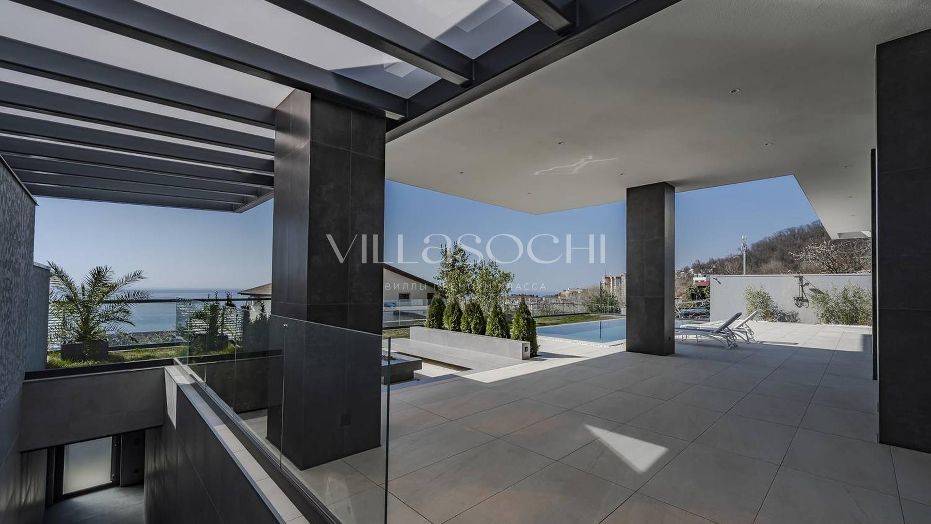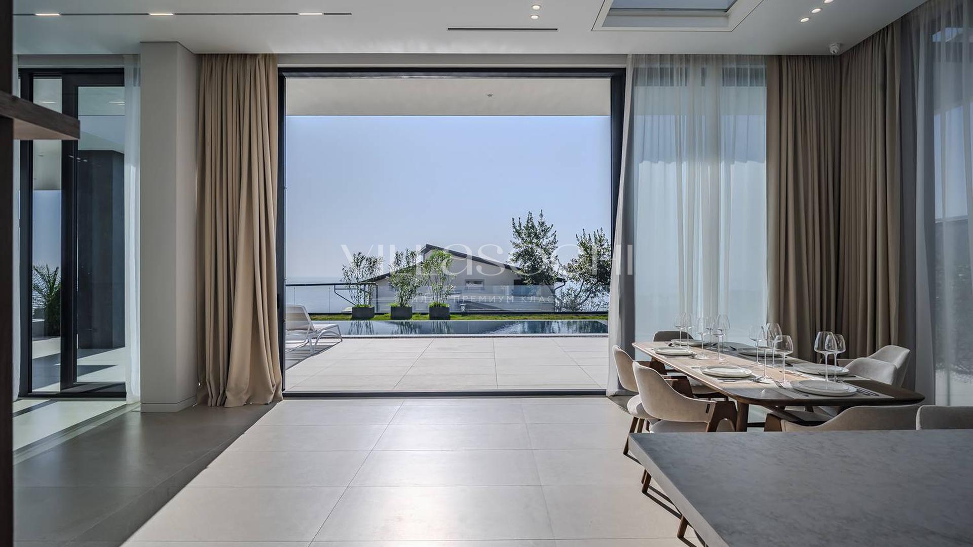 Дом максимально поднят над соседними коттеджами, что гарантирует панорамный вид на море и приватность.