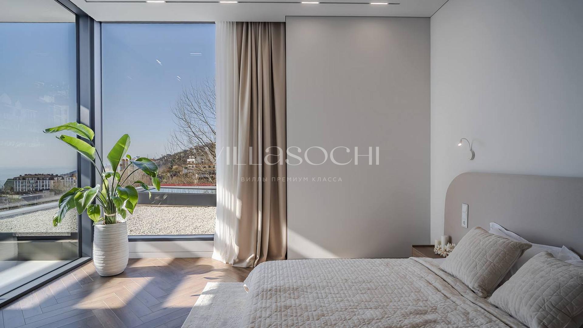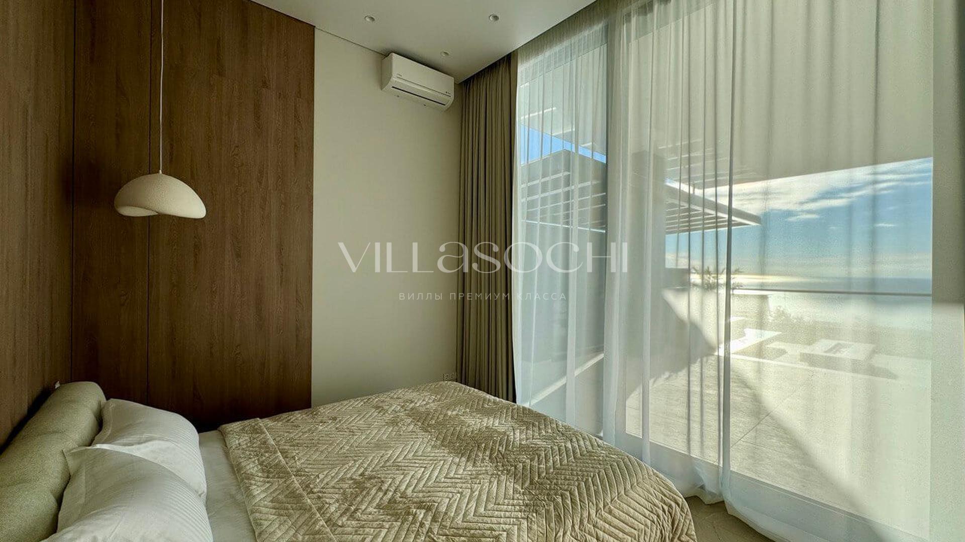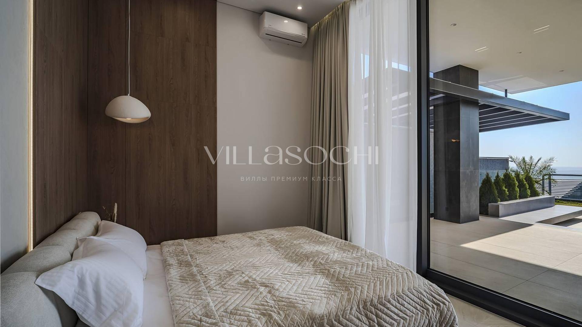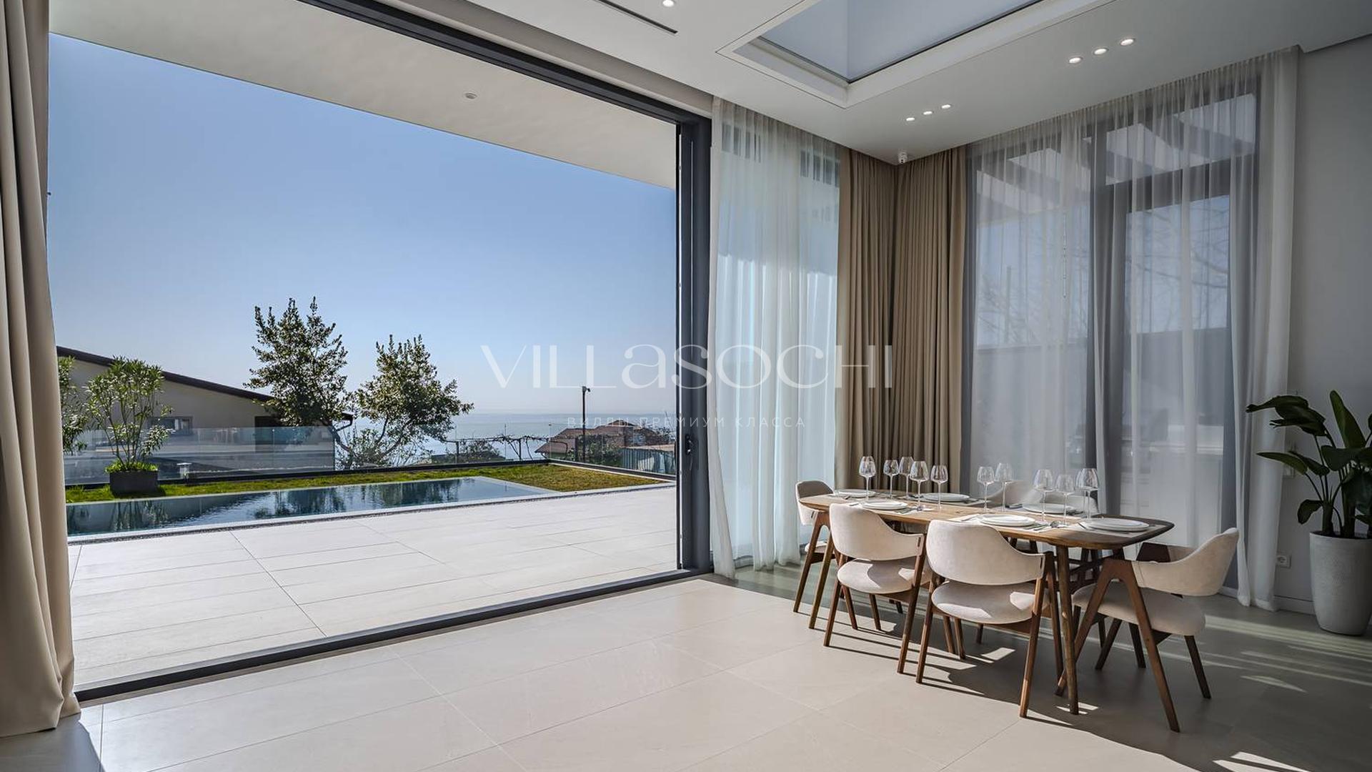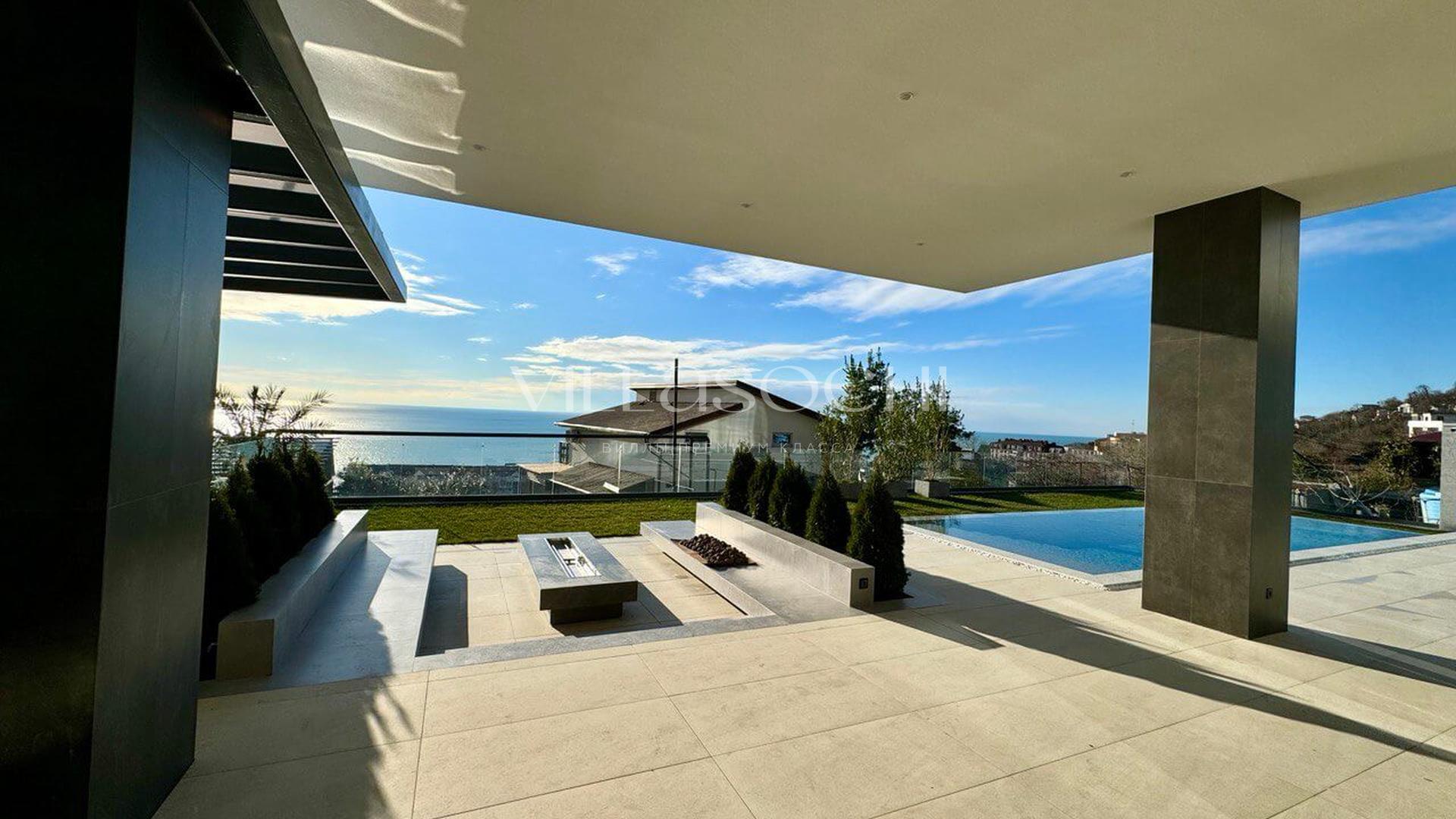 Дом максимально поднят над соседними коттеджами, что гарантирует панорамный вид на море и приватность.