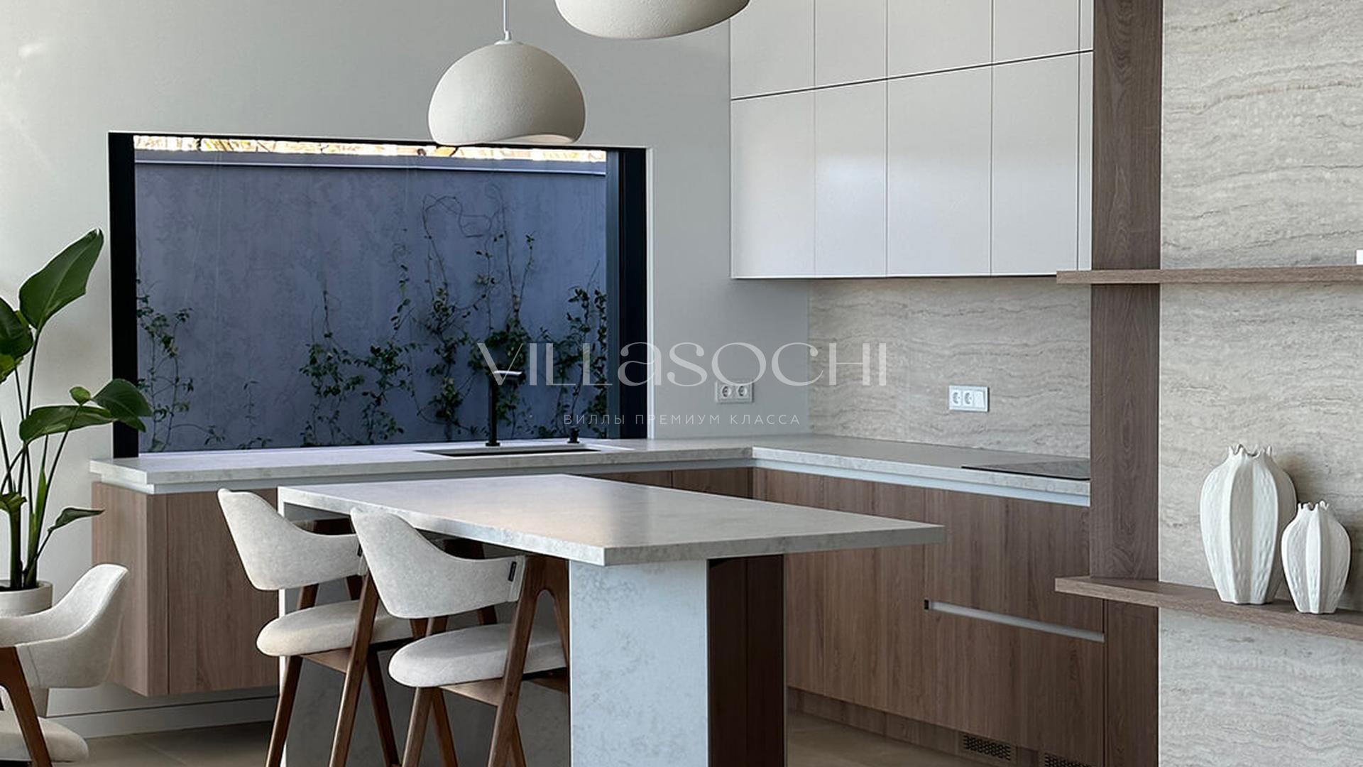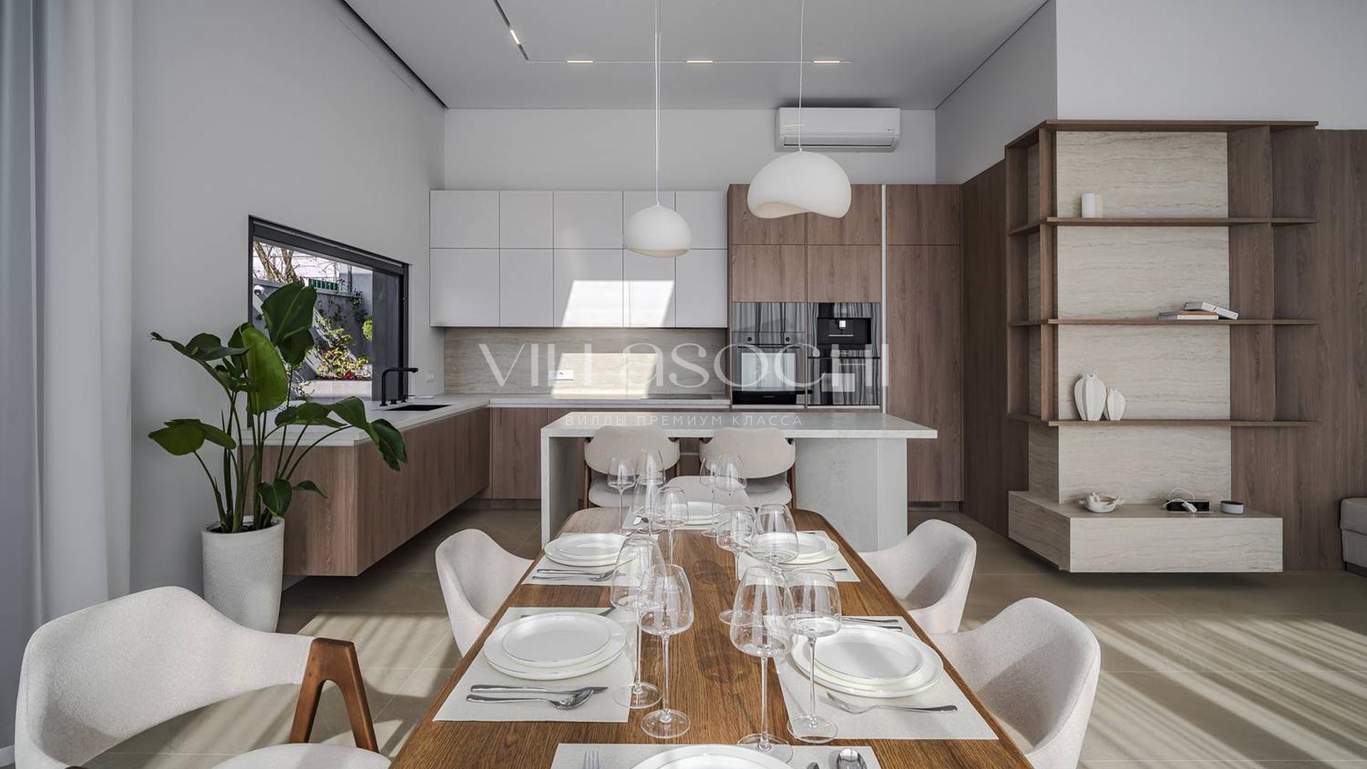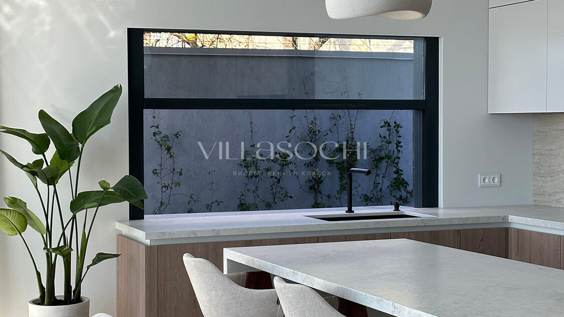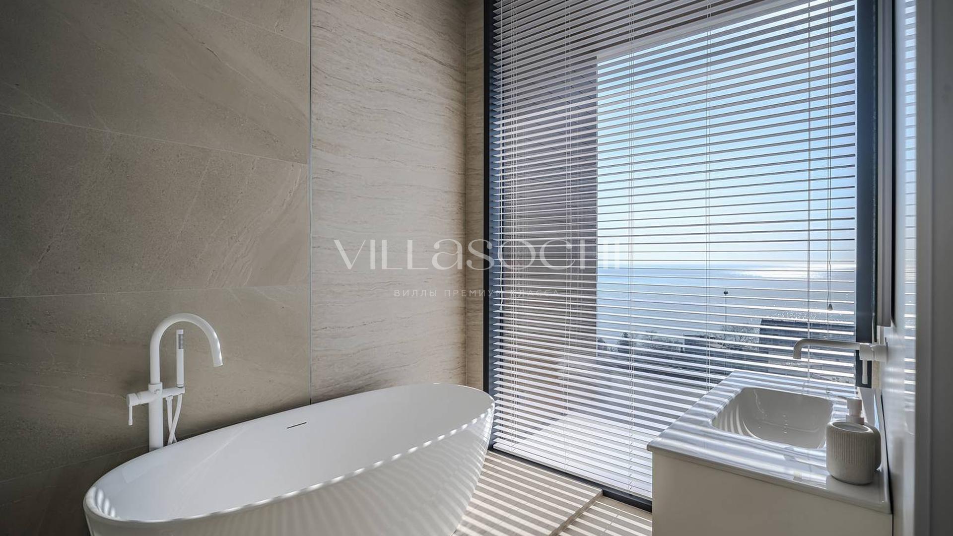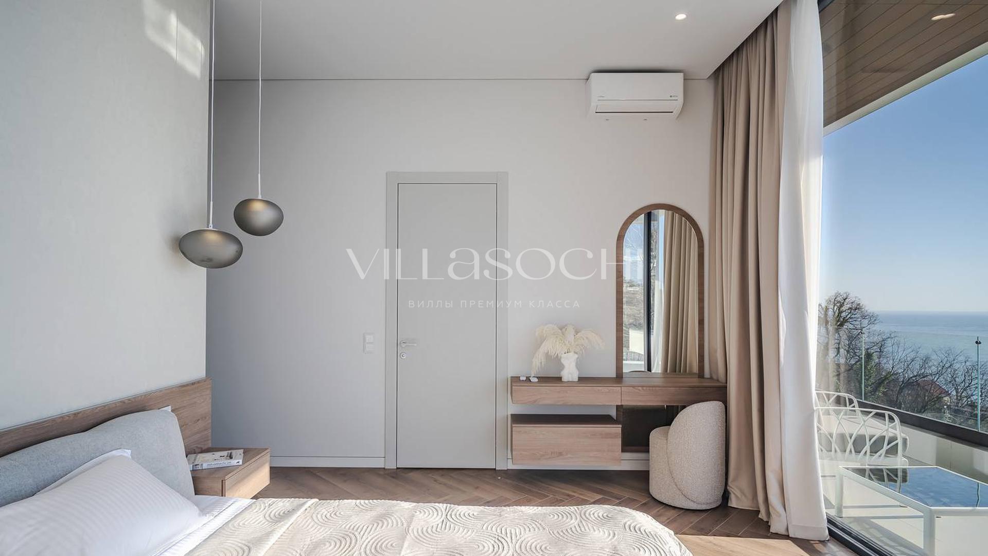 Дом максимально поднят над соседними коттеджами, что гарантирует панорамный вид на море и приватность.