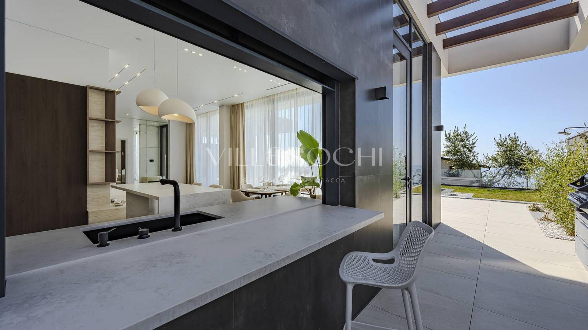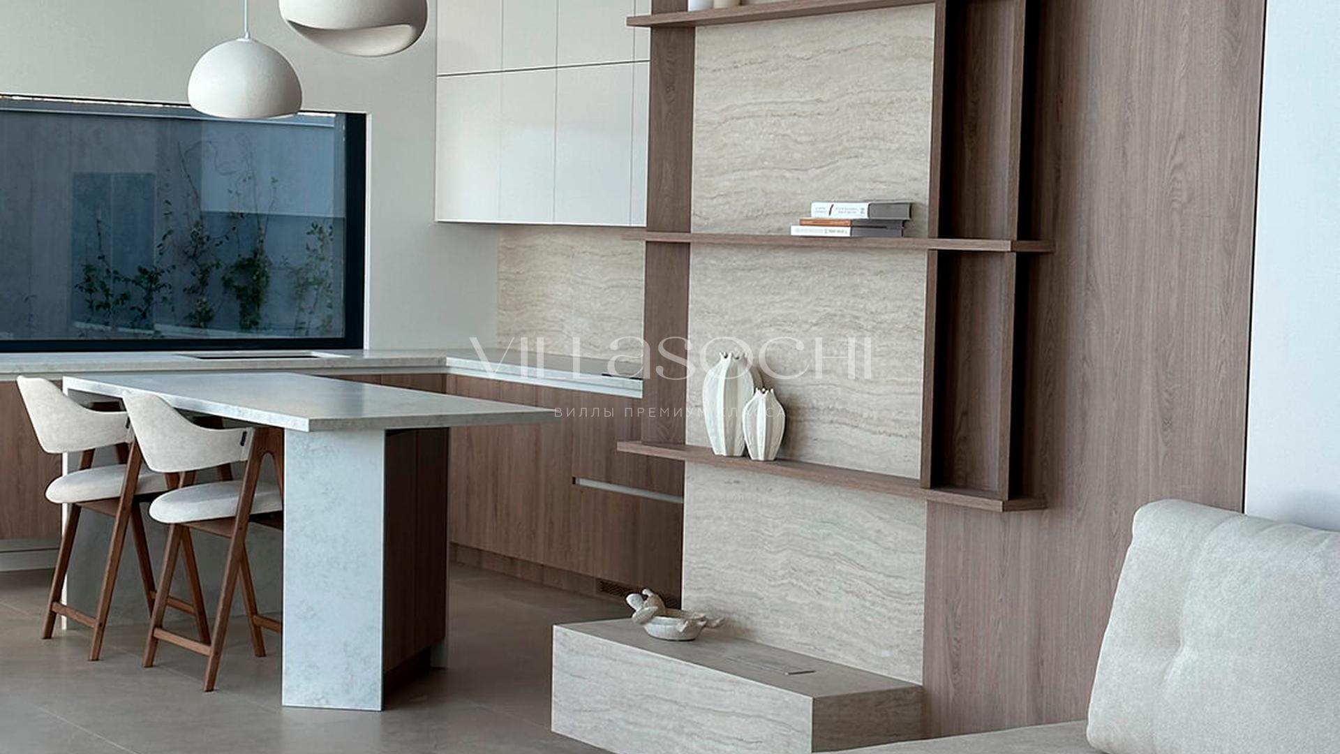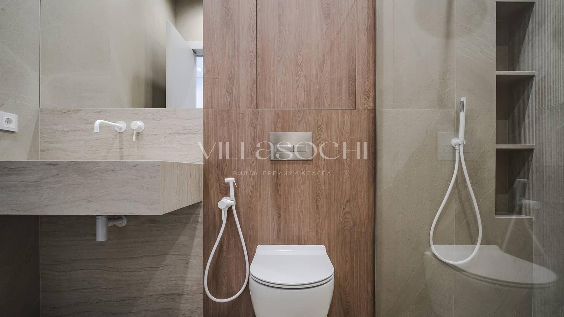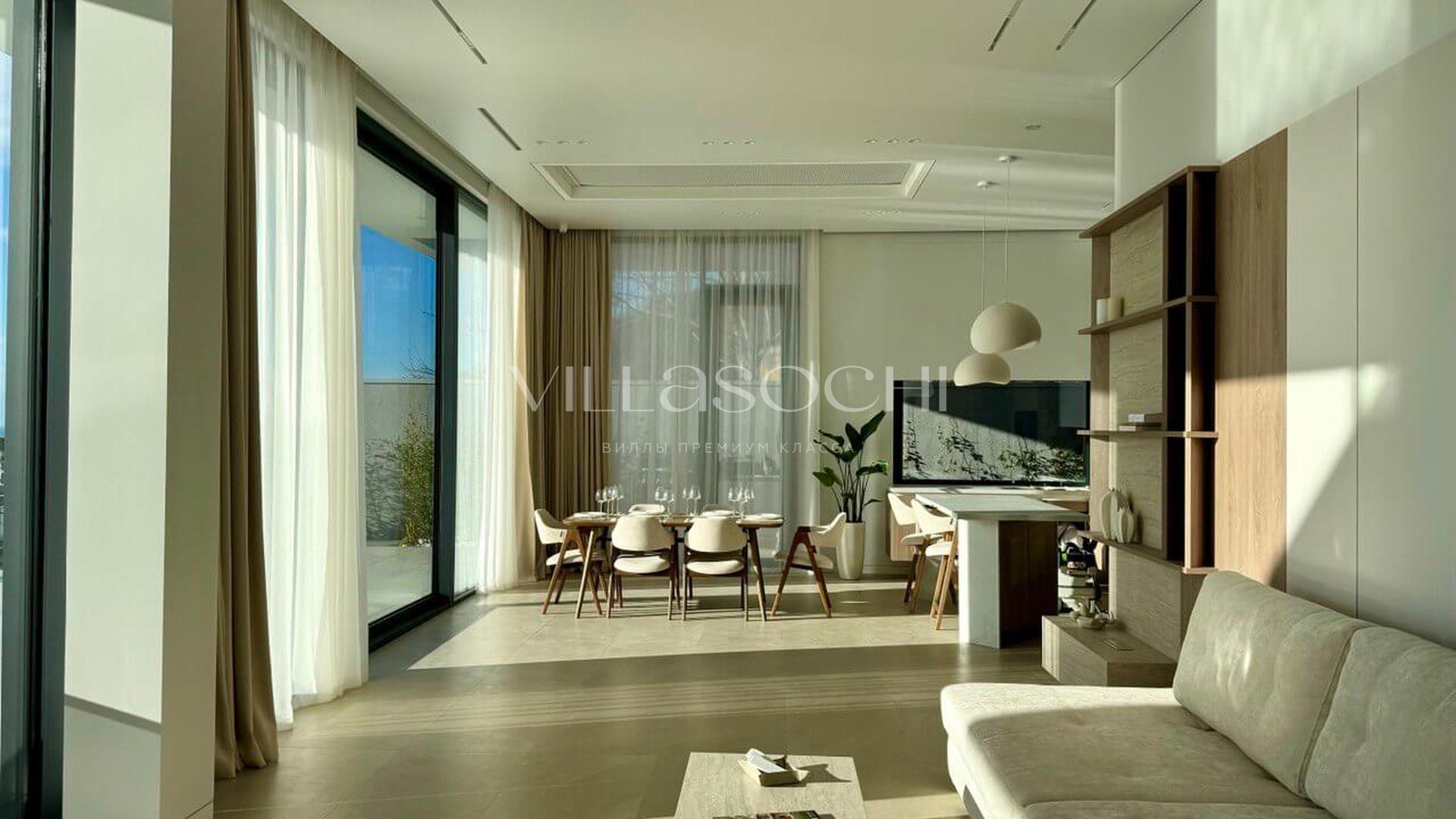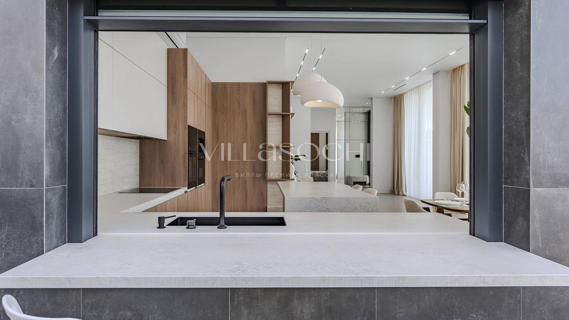 Дом максимально поднят над соседними коттеджами, что гарантирует панорамный вид на море и приватность.